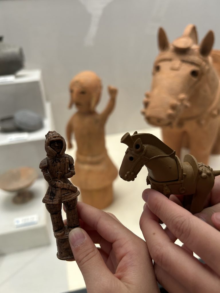 出てきたミニ土器を、展示の本物の土器の前にそっと並べて写真をパシャリ。