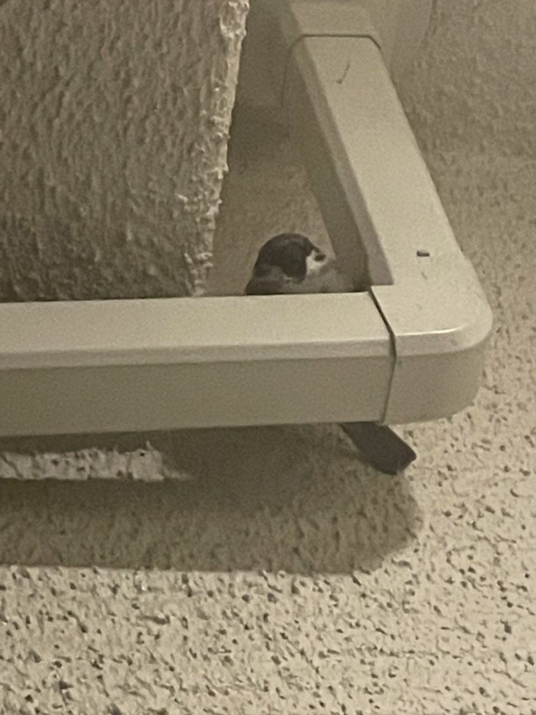 2か月前くらいから、急に夜になると毎晩我が家の玄関軒下に来るようになりました。人が出入りしても、声を掛けても全く逃げずにこちらをじっと見ています。調べてみたら、「すずめのお宿」という状態らしいです笑。
